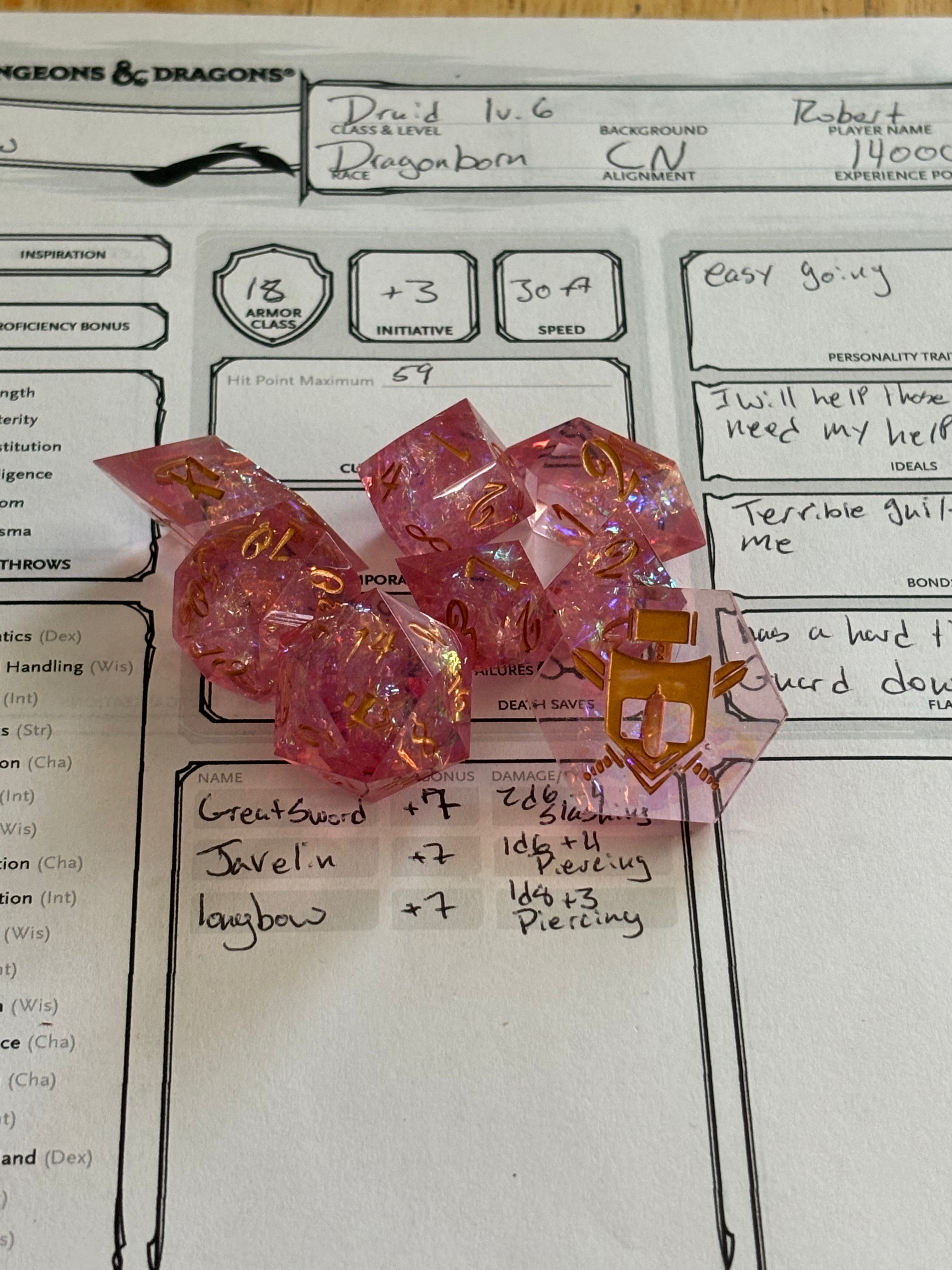 Hello, my name is Robert! Welcome to Robotronix Dice; where you can find the products of my various hobbies. With the main one being handmade resin dice. I started my dice making adventure around February of 2021 after wondering for years how exactly the process worked. Since then I have come up with a product I am really proud of. I have also dabbled in wood working where I make dice trays, dice towers, and even wooden pens/pencils. Hope you find them as cool as I do.